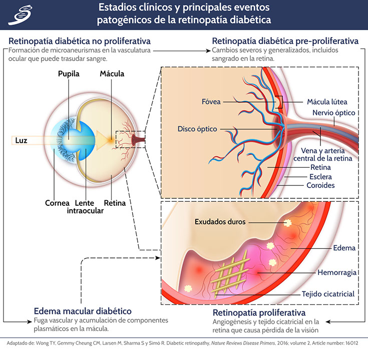 Wong TY, Gemmy Cheung CM, Larsen M, Sharma S y Simó R. Diabetic retinopathy, Nature Reviews Disease Primers, 2016; volume 2, Article number: 16012