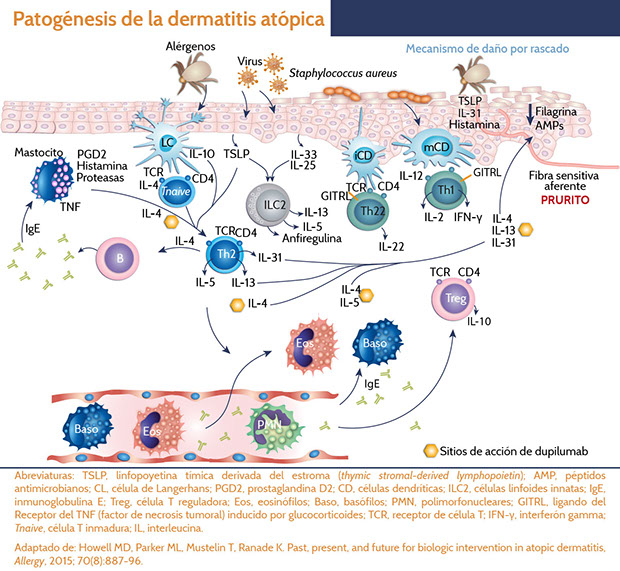 La dermatitis atópica (DA) es una patología con una prevalencia mundial de 3-10% en adultos y de hasta 20% en niños. Es una entidad que encarece la calidad de vida, con un mecanismo fisiopatológico que dramáticamente podríamos comparar con una traición por omisión de la propia piel para la defensa del cuerpo, o una reacción inmune de hipersensibilidad exagerada nivel telenovela mexicana.