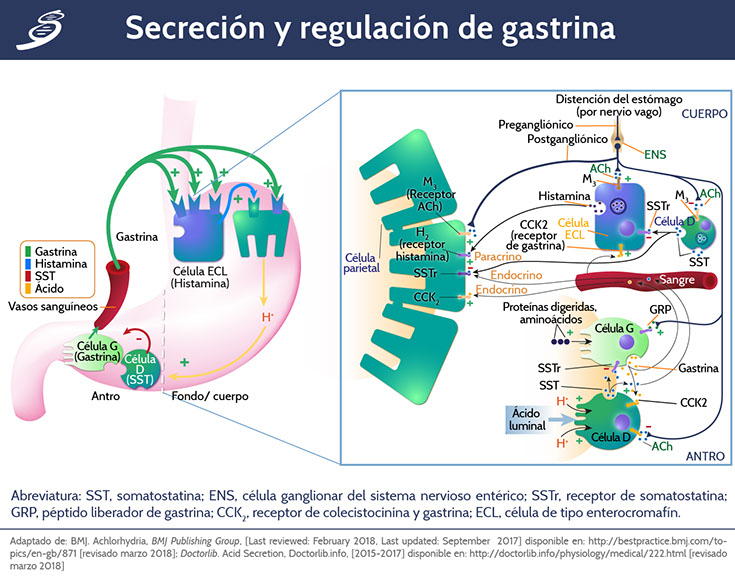 Phan J, Benhammou JM y Pisegna JR. Gastric Hypersecretory States: Investigation and Management, Curr Treat Options Gastroenterol, 2015; 13(4): 386–397.