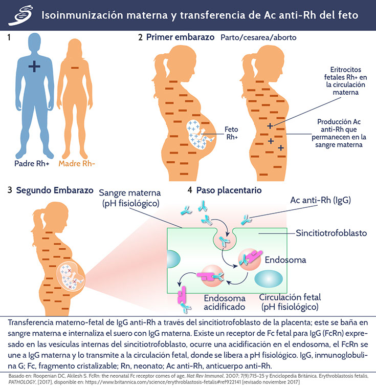 Una madre ya sensibilizada con anticuerpos propios IgG anti-Rh, al pasar de la madre al feto vía placentaria, generan una reacción de hemólisis contra los eritrocitos fetales, causando una serie de consecuencias mencionadas a continuación: