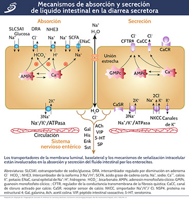 Thiagarajah JR, Donowitz M, Verkman AS. Secretory diarrhoea: mechanisms and emerging therapies, Nat Rev Gastroenterol Hepatol. 2015; 12(8):446-57.