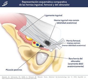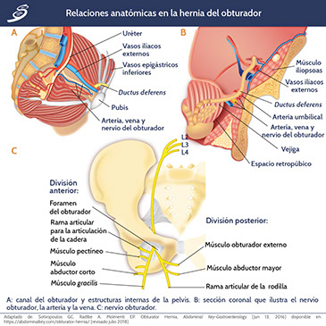 Sotiropoulos GC, Radtke A, Molmenti EP. Obturator Hernia, Abdominal Key-Gastroenterology [Jun 13, 2016] disponible en: https://abdominalkey.com/obturator-hernia/ [revisado julio 2018]