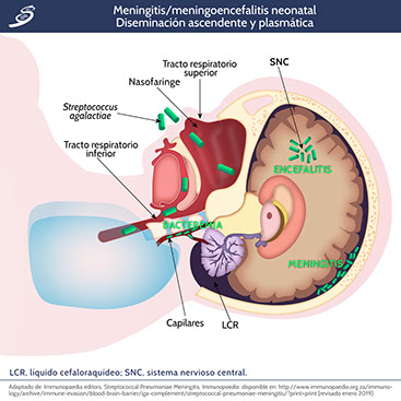 Immunopaedia editors. Streptococcal Pneumoniae Meningitis. Immunopaedia. disponible en: http://www.immunopaedia.org.za/immunology/archive/immune-evasion/blood-brain-barrier/iga-complement/streptococcal-pneumoniae-meningitis/?print=print [revisado enero 2019]