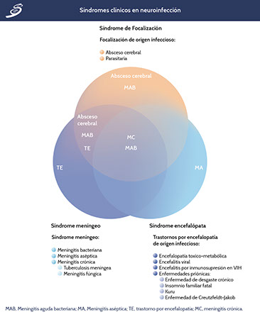 De lo anterior se derivan los síndromes clínicos cardinales para diferenciar clínicamente algunos tipos de neuroinfección en sistema nervioso central (SNC):