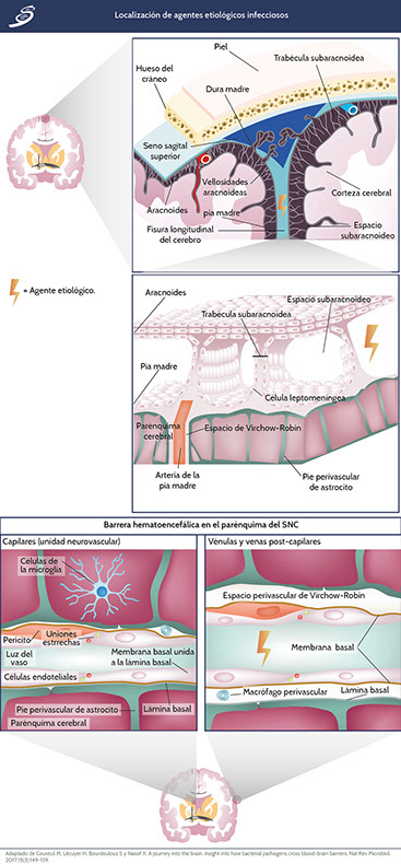 8. Coureuil M, Lécuyer H, Bourdoulous S y Nassif X. A journey into the brain: insight into how bacterial pathogens cross blood-brain barriers, Nat Rev Microbiol. 2017;15(3):149-159.