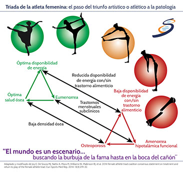 Entonces, ¿cómo puede ser que las emociones y sensaciones corporales positivas derivadas del baile, se conviertan en algo tan tóxico y adulterado como es la triada de la atleta femenina (es más frecuente en mujeres, por eso así se estableció), que no es más que un boleto sin retorno al umbral de una muerte escalonada y tortuosa? Esta triada se conforma por amenorrea hipotalámica funcional, osteoporosis y baja disponibilidad de energía con o sin un trastorno alimenticio.